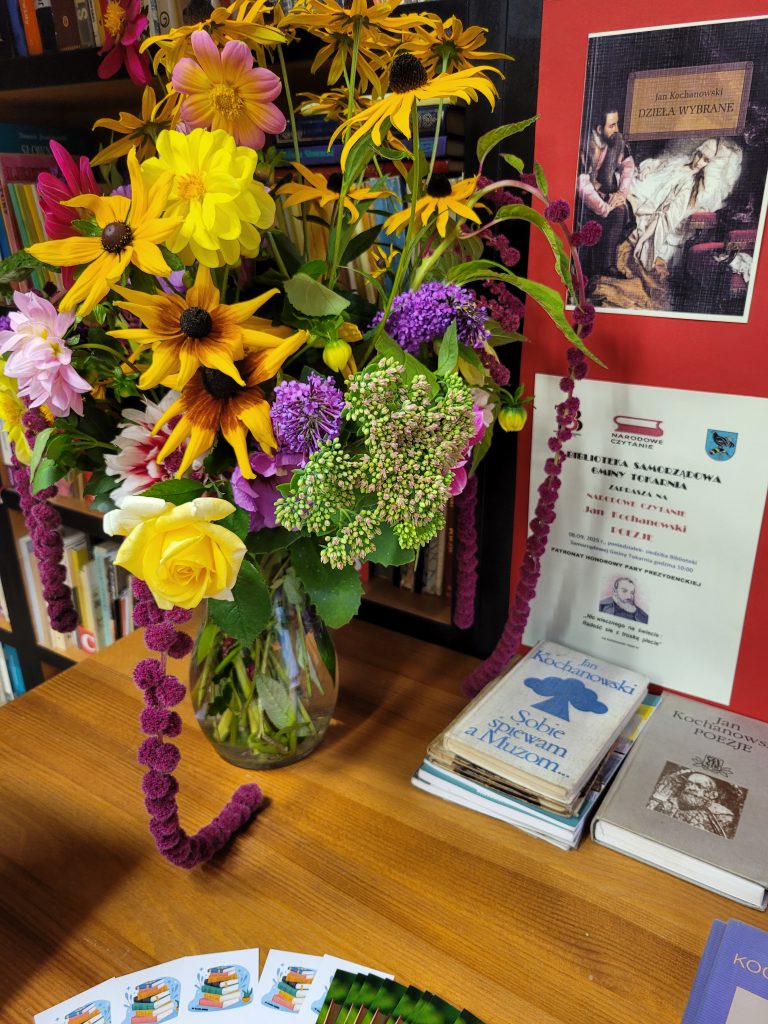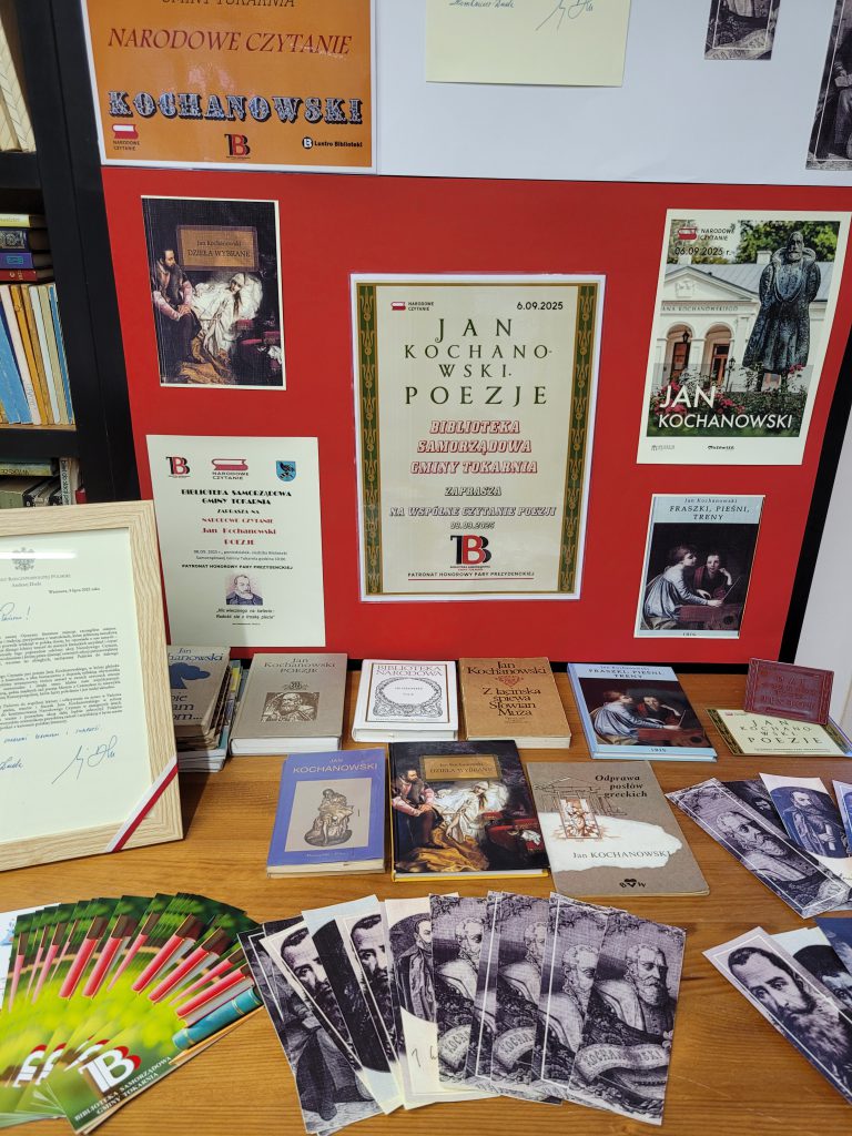 8 września w naszej Bibliotece spotkamy się z młodzieżą ze Szkoły Podstawowej nr 1 im. Księdza Kardynała Stefana Wyszyńskiego Prymasa Tysiąclecia w Tokarni, wspólnie na nowo odkrywać będziemy pieśni, treny i fraszki Mistrza z Czarnolasu.